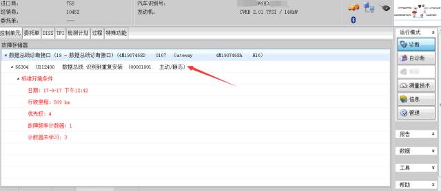 首先当然是读下系统故障码了,这是什么时候都要做的第一件事。果然网关系统有个故障!那么我们看下是什么吧!