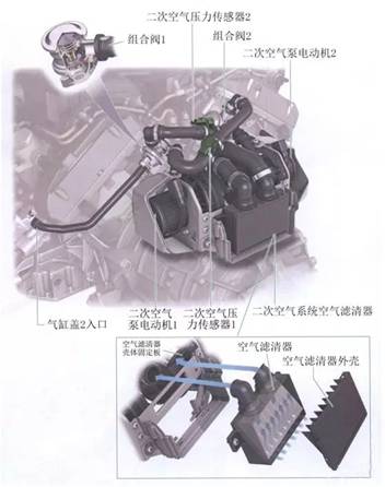进气系统主要由空气滤清器总成、涡轮增压器、中冷器、进气歧管、进气管总成、空气流量传感器和节气门总成等组成。