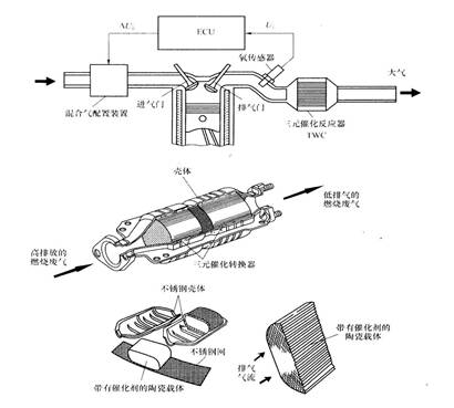 三元催化转化器:安装在汽车排气系统中的净化装置,减少尾气污染排放。