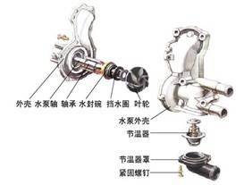 水泵:安装于发动机上,使系统内的水能完成循环工作。
