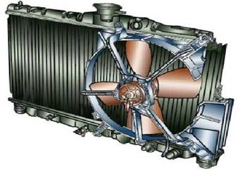 散热器:在冷却风扇的配合下,对发动机出来的水进行降温。