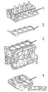 1—气缸盖 2—气缸盖衬垫 3—气缸体 4—油底壳