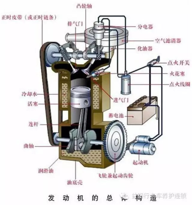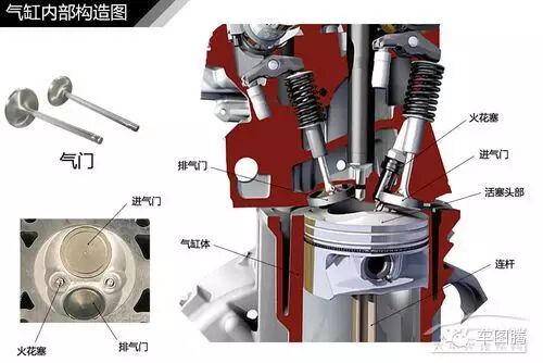 发动机能产生动力其实是源于气缸内的“爆炸力”。在密封气缸燃烧室内,火花塞将一定比例汽油和空气的混合气体在合适的时刻里瞬间点燃,就会产生一个巨大的爆炸力,而燃烧室是顶部是固定的,巨大的压力迫使活塞向下运动,通过连杆推动曲轴,在通过一系列机构把动力传到驱动轮上,最终推动汽车。
