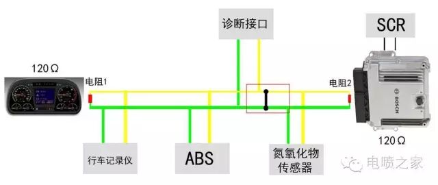 2、有的CAN总线首尾的电脑内部本身就设计了电阻,如下图(以德龙天然气CAN总线为例):