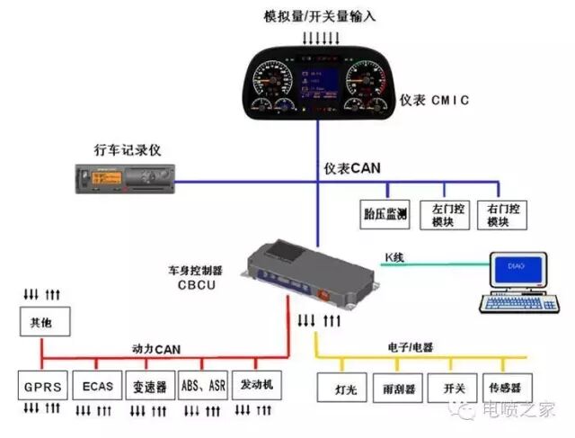 1. CAN通讯总线实现ECU、CBCU、ABS、CAN 仪表等CAN设备之间信息共享,比如水温、机油压力等,仅需ECU安装传感器即可, 就能把当前测得的水温、机油压力时时传送给CAN仪表。CAN仪表不需要专门安装水温、机油压力传感器了。