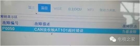 潍柴配博世2.2后处理,现行故障码:CAN接收帧AT101超时。此故障码表示ECU未能接收到氮氧化物传感器发送来的数据信息。