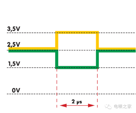 原则上CAN总线用一条导线就足以满足功能要求了,但该总线系统上还是配备了第二条导线。在这个第二条导线上,信号电压与第一条成镜像,这样可有效抑制外部干扰。