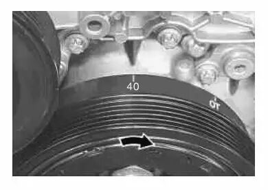 03 沿发动机运转方向转动曲轴95°曲轴转角,使其处于1缸点火上止点后40°位置。